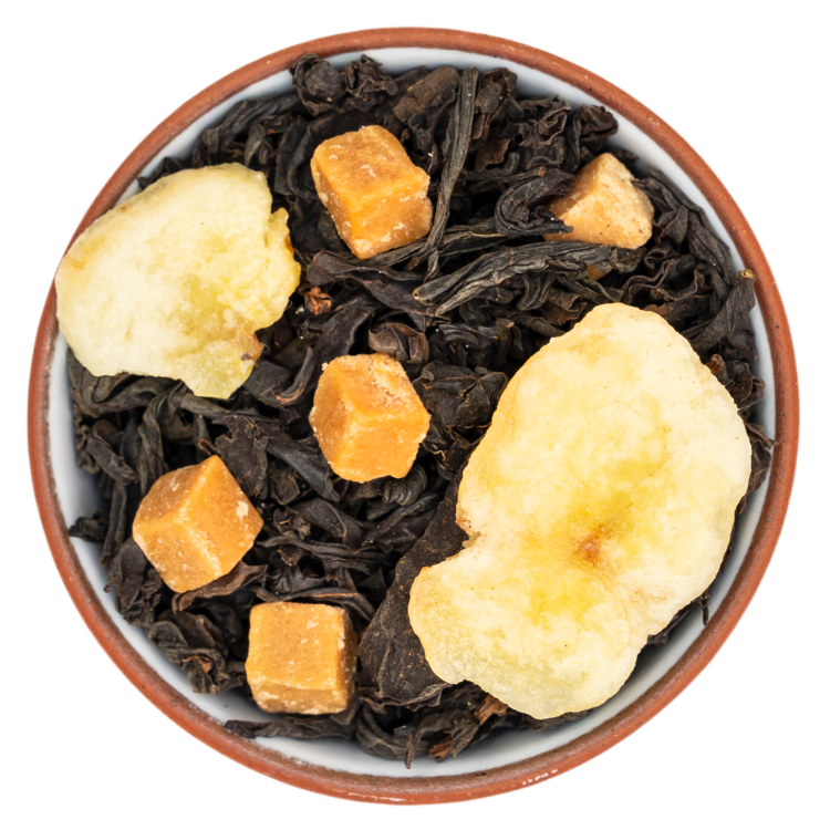 чай черный ассам, банан кусочки, карамель кусочки, ароматизатор